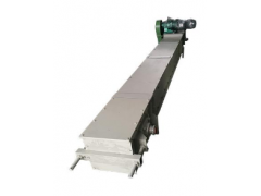 采用输送链条配合刮板片整体拖曳物料流克服机槽底部的摩擦力,将物料从进料处水平输送至卸料处,拖曳料流时需要依靠料流内部的摩擦力形成整体流,当物料的内部摩擦力不足时会产生产量降低的情况。采用U型机槽配合U型刮板片可以降低机槽内部的物料残留;采用镀锌圆环链可以降低链条的总重,减少输送能耗,适用于长途输送的场合。